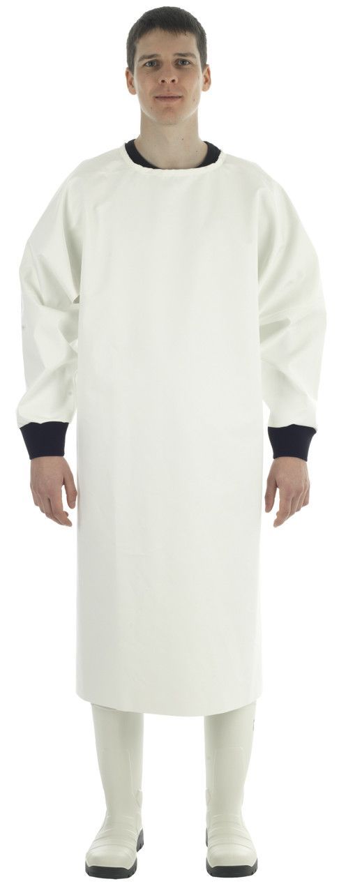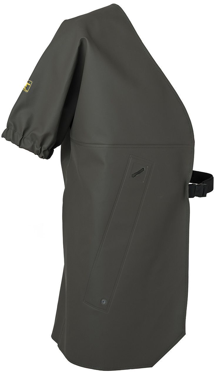 O tecido e as costuras são impermeáveis, mas o formato específico deste artigo significa que não é totalmente impermeável, a menos que seja usado um casaco, bata ou casaco de classe EPI.