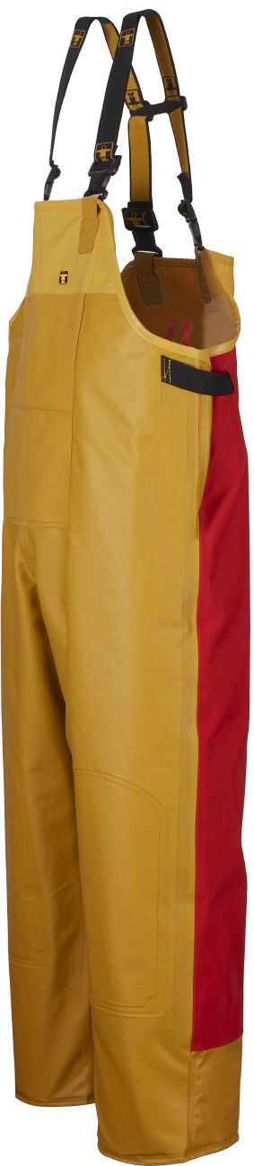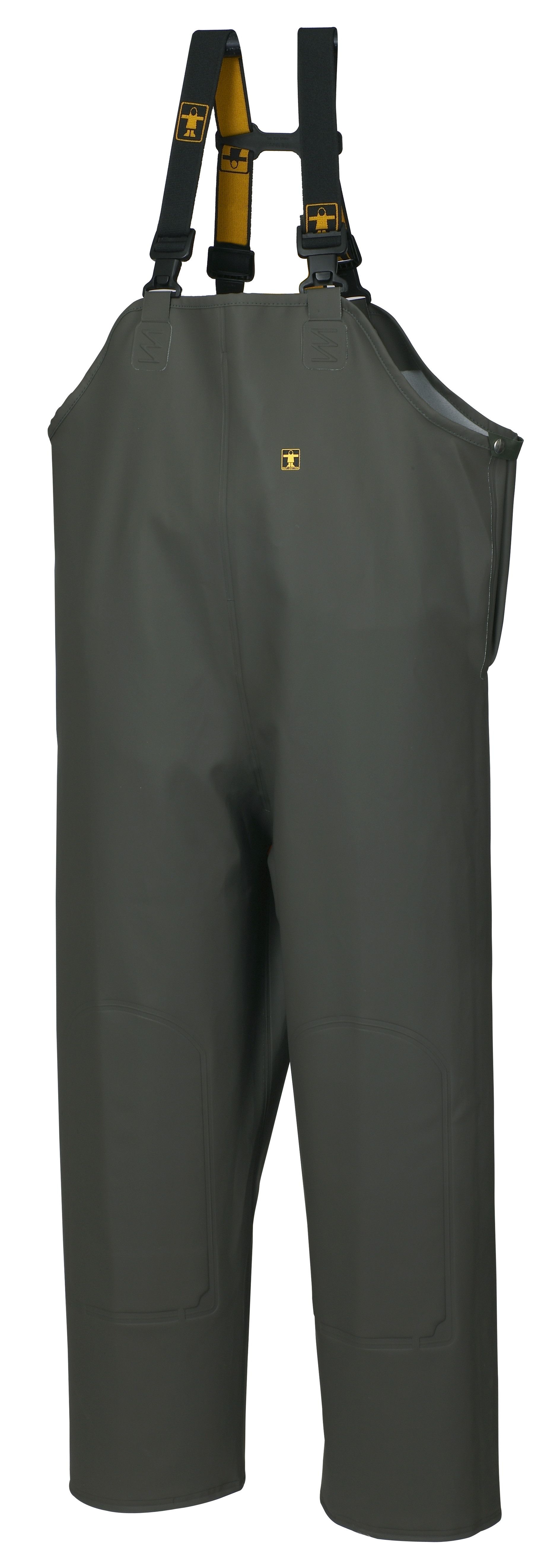 Espaçoso com boa cobertura traseira e frontal. Frente do babador totalmente forrada e 3 larguras nos joelhos. Podem ser inseridos reforços interiores nos joelhos. Cintas elásticas ajustáveis, removíveis por meio de fivelas de clipe de plástico+1 reforço de suporte. Bolso interno no peito. Presilha interna para secar ou guardar o babador. Elástico autoajustável na lateral. Para máxima proteção, as calças com babadores e suspensórios NORTH SEA podem ser usadas com jaqueta, bata ou casaco com classificação EPI.