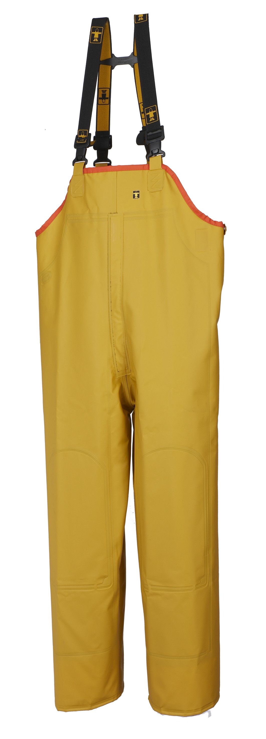 Babete impermeável e suspensórios com duplo reforço em toda a frente e 3 larguras nos joelhos. Bolso no peito. Cintura elástica nas costas. Mosca de proteção contra tempestades com autoaperto. Aberturas laterais por fivela de plástico + fecho de pressão. Reforços nos joelhos. Suspensórios ajustáveis e removíveis por fivelas de clipe de plástico. Presilha interna para secar ou guardar o babador.