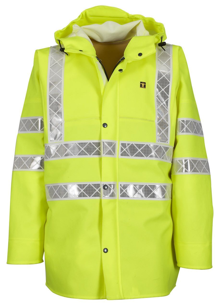 Casaco EPI impermeável ideal para atividades profissionais. Capuz em 2 secções com boa cobertura + cordão. Zíper sob aba dupla com fecho de pressão. Corte quimono para facilitar os movimentos. Costuras soldadas de alta frequência. Punhos elásticos com fecho de pressão e reforço.