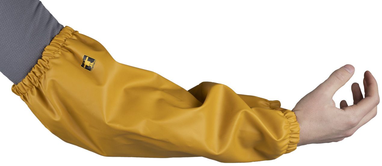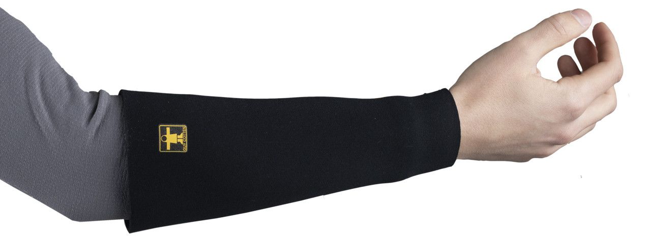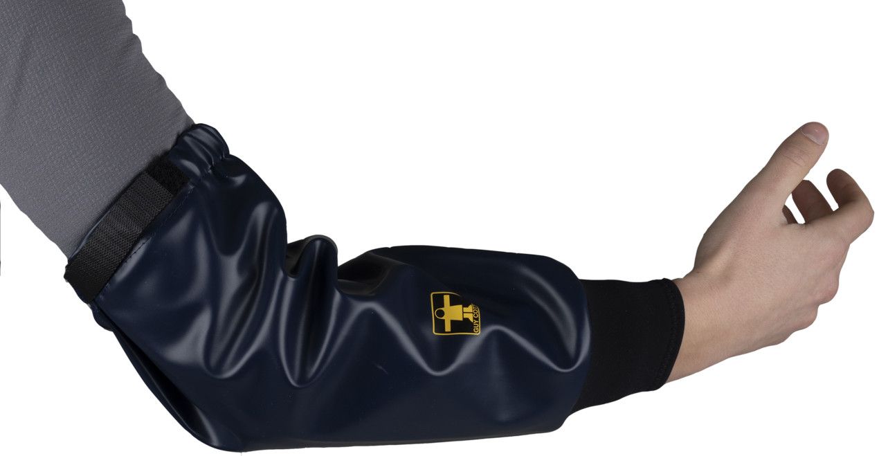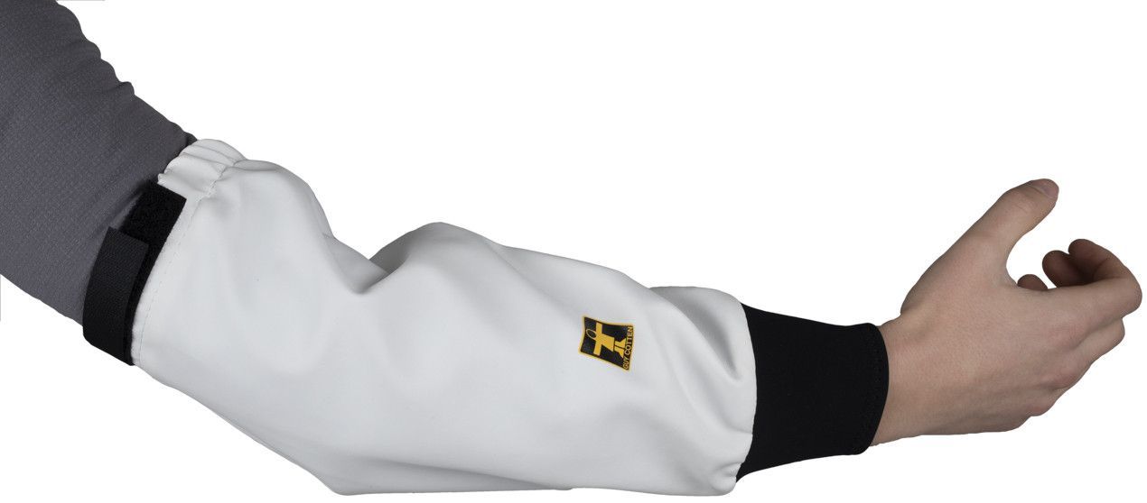 Os punhos deslizam sobre as luvas para uma boa proteção do braço.
