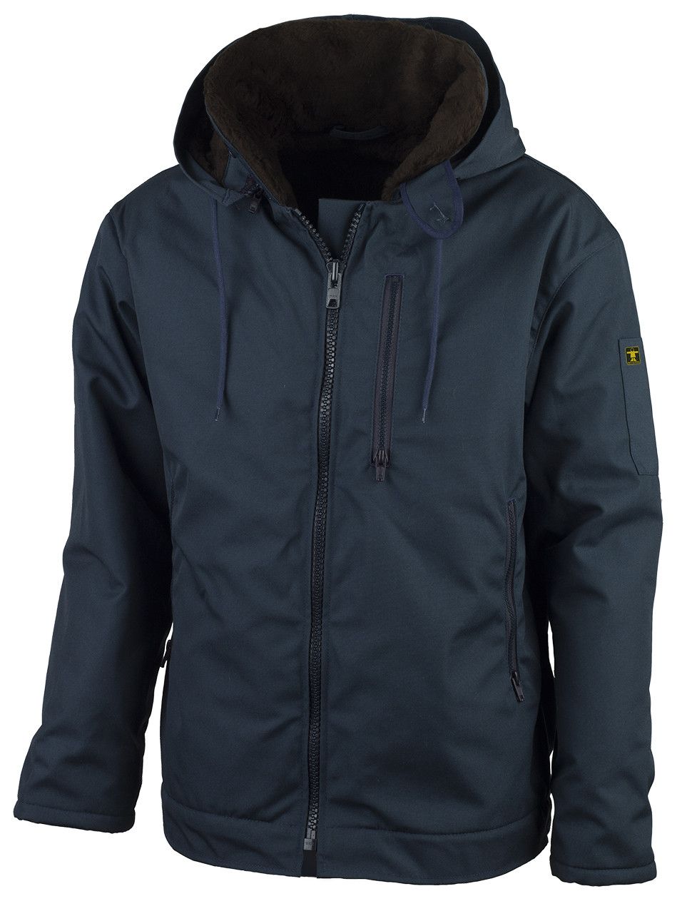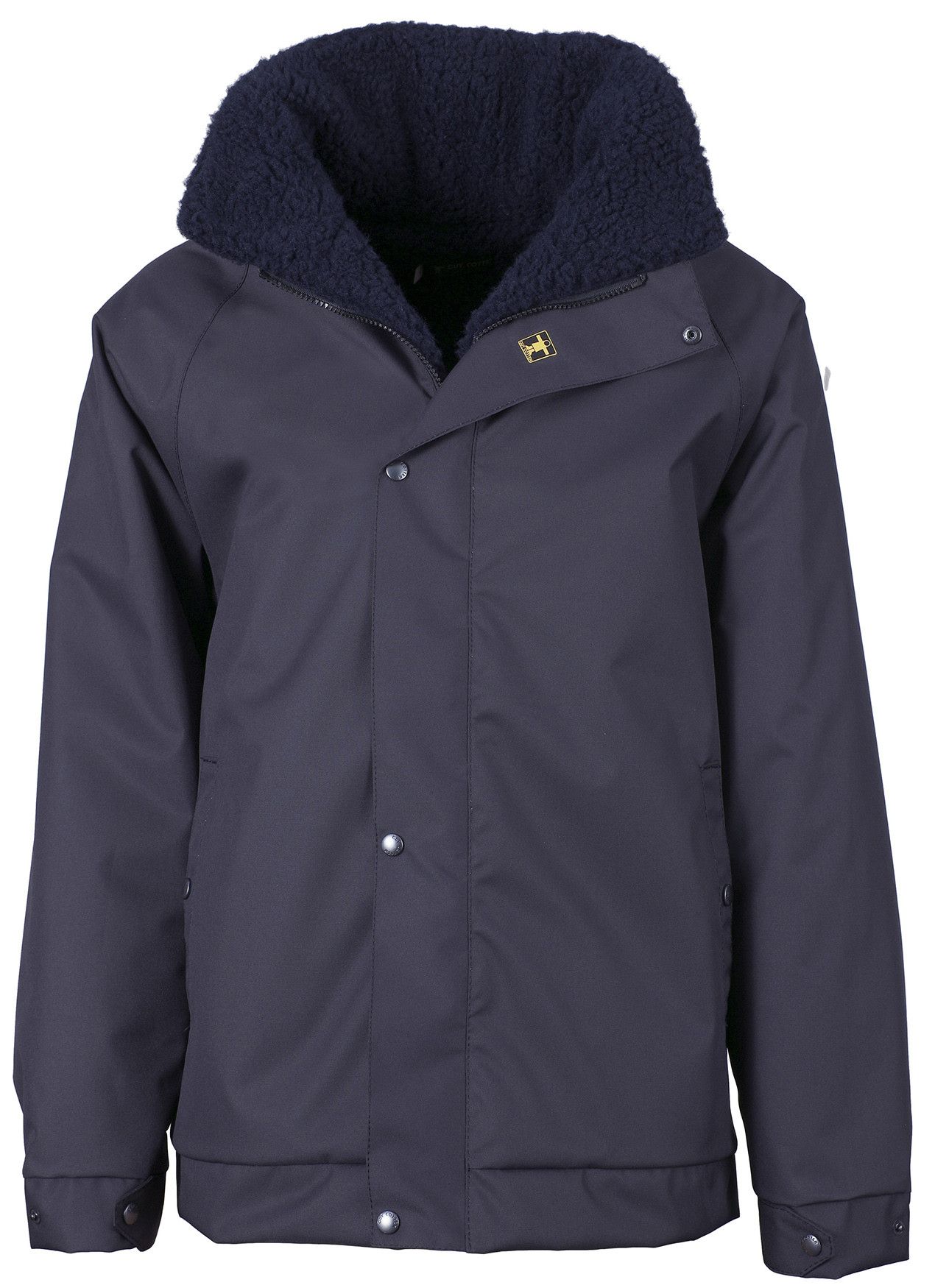 Fecho de correr muito resistente sob aba dupla com fechos de pressão ocultos. Capuz ajustável com viseira. Punhos elásticos com fecho de pressão e reforço